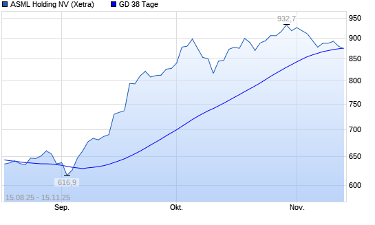 Mit dem Rücksetzer auf 863,60 EUR hat die ASML Holding-Aktie am 14.11.2025 die 38-Tage-Linie nach unten gekreuzt.