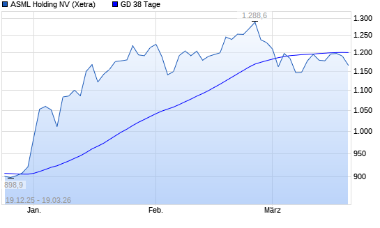 Mit dem Rücksetzer auf 1.193,60 EUR hat die ASML Holding-Aktie am 18.03.2026 die 38-Tage-Linie nach unten gekreuzt.