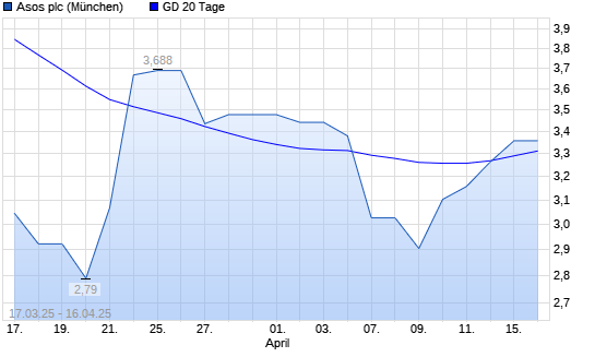 Mit dem Anstieg auf 3,26 EUR hat die ASOS-Aktie am 15.04.2025 die 20-Tage-Linie nach oben gekreuzt.