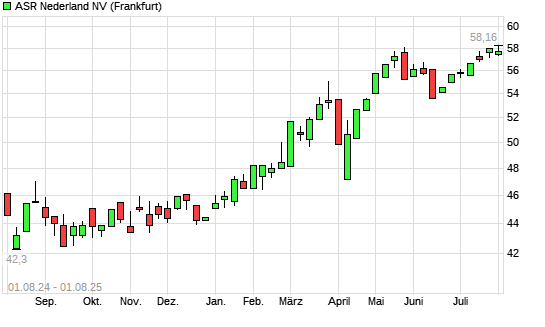 Mit dem Anstieg auf 58,16 EUR hat die ASR Nederland-Aktie (ISIN NL0011872643) am 31.07.2025 ein neues All-Time-High erreicht und damit den Kurs vom 30.07.2025 eingestellt.