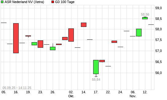 Mit dem Anstieg auf 58,44 EUR hat die ASR Nederland-Aktie am 13.11.2025 die 100-Tage-Linie nach oben gekreuzt.