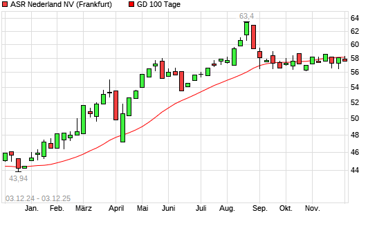 Mit dem Rücksetzer auf 57,72 EUR hat die ASR Nederland-Aktie am 02.12.2025 die 100-Tage-Linie nach unten gekreuzt.