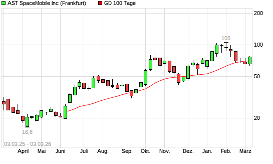 Mit dem Anstieg auf 70,50 EUR hat die AST SpaceMobile-Aktie am 02.03.2026 die 100-Tage-Linie nach oben gekreuzt.