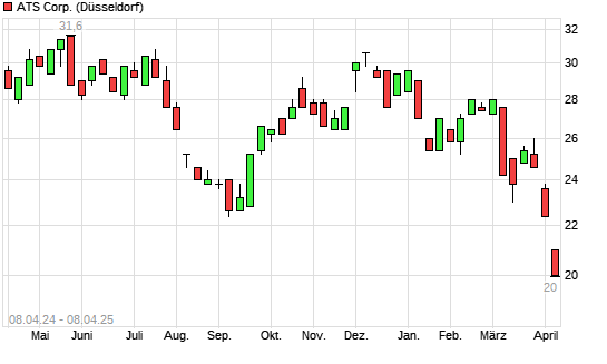Mit dem Rücksetzer auf 21,20 EUR hat die ATS Automation-Aktie (ISIN CA00217Y1043) am 07.04.2025 ein neues 3-Jahres-Tief erreicht und damit den Kurs vom 05.09.2024 eingestellt.