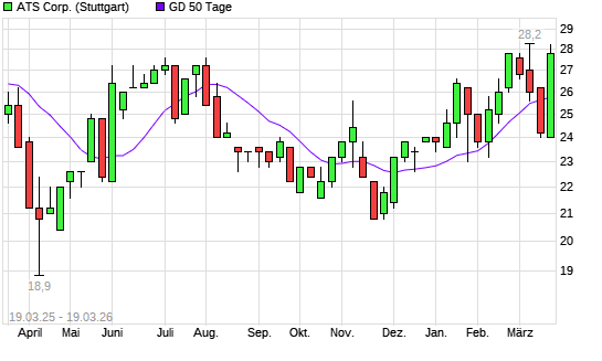 Mit dem Anstieg auf 26,40 EUR hat die ATS Automation-Aktie am 18.03.2026 die 50-Tage-Linie nach oben gekreuzt.