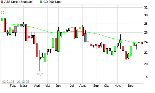 Mit dem Rücksetzer auf 23,60 EUR hat die ATS Automation-Aktie am 30.12.2025 die 200-Tage-Linie nach unten gekreuzt.