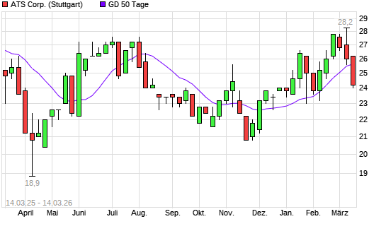 Mit dem Rücksetzer auf 24,60 EUR hat die ATS Automation-Aktie am 13.03.2026 die 50-Tage-Linie nach unten gekreuzt.