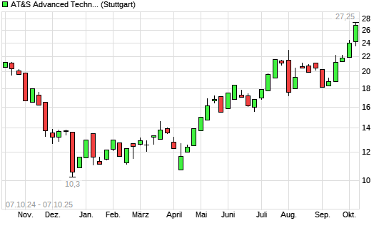 Mit dem Anstieg auf 25,70 EUR hat die AT&S-Aktie (ISIN AT0000969985) am 06.10.2025 ein neues 12-Monats-Hoch erreicht und damit den Kurs vom 02.10.2025 eingestellt.