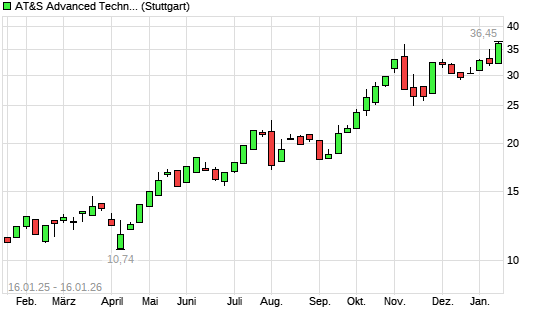 Mit dem Anstieg auf 35,50 EUR hat die AT&S-Aktie (ISIN AT0000969985) am 15.01.2026 ein neues 12-Monats-Hoch erreicht und damit den Kurs vom 03.11.2025 eingestellt.