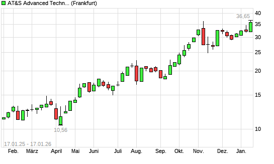 Mit dem Anstieg auf 35,95 EUR hat die AT&S-Aktie (ISIN AT0000969985) am 16.01.2026 ein neues 12-Monats-Hoch erreicht und damit den Kurs vom 15.01.2026 eingestellt.