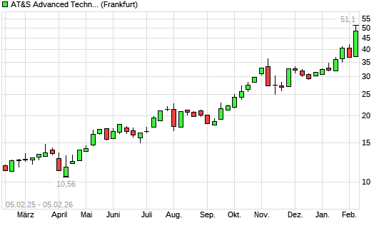 Mit dem Anstieg auf 49,15 EUR hat die AT&S-Aktie (ISIN AT0000969985) am 04.02.2026 ein neues 3-Jahres-Hoch erreicht und damit den Kurs vom 03.02.2026 eingestellt.