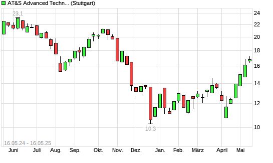 Mit dem Anstieg auf 16,74 EUR hat die AT&S-Aktie (ISIN AT0000969985) am 15.05.2025 ein neues 6-Monats-Hoch erreicht und damit den Kurs vom 14.05.2025 eingestellt.