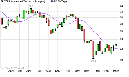 Mit dem Anstieg auf 12,58 EUR hat die AT&S-Aktie am 06.03.2025 die 50-Tage-Linie nach oben gekreuzt.