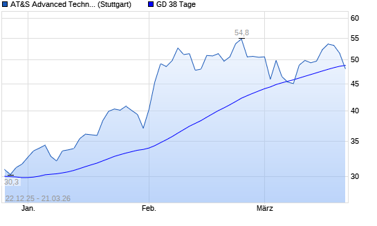Mit dem Rücksetzer auf 48,15 EUR hat die AT&S-Aktie am 20.03.2026 die 38-Tage-Linie nach unten gekreuzt.