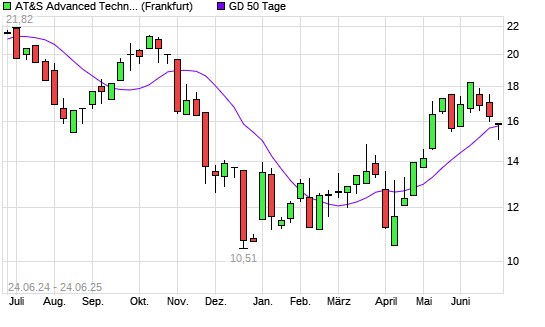 Mit dem Rücksetzer auf 15,44 EUR hat die AT&S-Aktie am 23.06.2025 die 50-Tage-Linie nach unten gekreuzt.