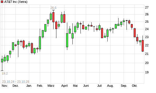 Mit dem Rücksetzer auf 21,88 EUR hat die AT&T-Aktie (ISIN US00206R1023) am 22.10.2025 ein neues 6-Monats-Tief erreicht und damit den Kurs vom 13.10.2025 eingestellt.