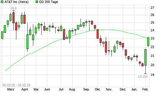 Mit dem Anstieg auf 23,04 EUR hat die AT&T-Aktie am 04.02.2026 die 200-Tage-Linie nach oben gekreuzt.