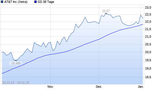 Mit dem Anstieg auf 22,32 EUR hat die AT&T-Aktie am 02.01.2025 die 38-Tage-Linie nach oben gekreuzt.