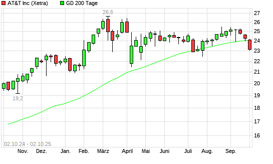 Mit dem Rücksetzer auf 23,49 EUR hat die AT&T-Aktie am 01.10.2025 die 200-Tage-Linie nach unten gekreuzt.