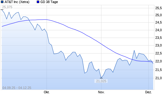 Mit dem Rücksetzer auf 21,91 EUR hat die AT&T-Aktie am 03.12.2025 die 38-Tage-Linie nach unten gekreuzt.