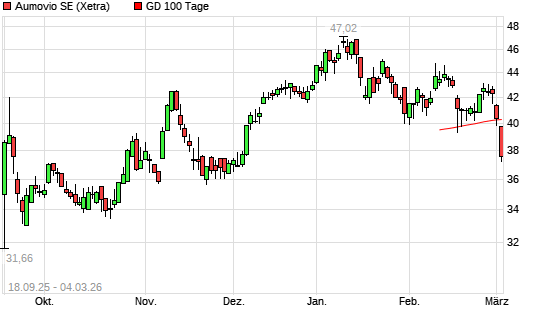 Mit dem Rücksetzer auf 37,52 EUR hat die AUMOVIO-Aktie am 03.03.2026 die 100-Tage-Linie nach unten gekreuzt.