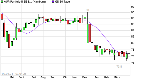 Mit dem Anstieg auf 77,00 EUR hat die AUR PORTFOLIO III SE-Aktie am 31.03.2025 die 50-Tage-Linie nach oben gekreuzt.