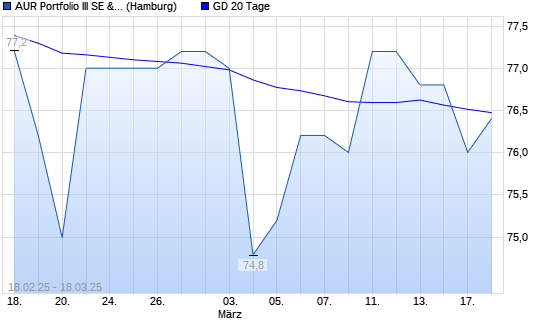 Mit dem Rücksetzer auf 76,00 EUR hat die AUR PORTFOLIO III SE-Aktie am 17.03.2025 die 20-Tage-Linie nach unten gekreuzt.