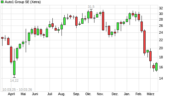 Mit dem Rücksetzer auf 15,76 EUR hat die AUTO1-Aktie (ISIN DE000A2LQ884) am 09.03.2026 ein neues 12-Monats-Tief erreicht und damit den Kurs vom 03.03.2026 eingestellt.