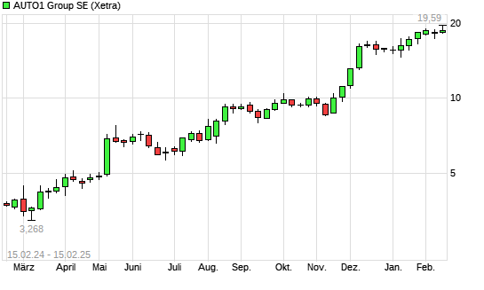 Mit dem Anstieg auf 19,37 EUR hat die AUTO1-Aktie (ISIN DE000A2LQ884) am 14.02.2025 ein neues 3-Jahres-Hoch erreicht und damit den Kurs vom 13.02.2025 eingestellt.