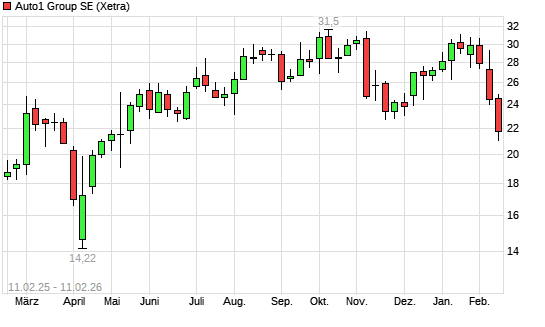 Mit dem Rücksetzer auf 22,72 EUR hat die AUTO1-Aktie (ISIN DE000A2LQ884) am 10.02.2026 ein neues 6-Monats-Tief erreicht und damit den Kurs vom 21.11.2025 eingestellt.