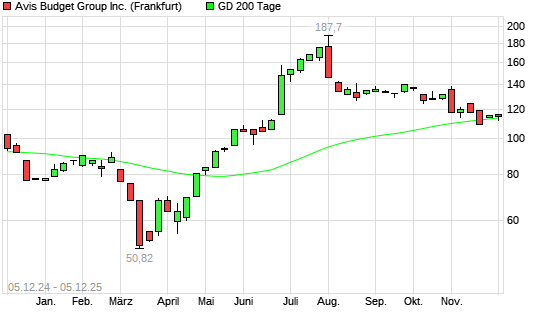 Mit dem Anstieg auf 114,85 EUR hat die AVIS Budget-Aktie am 04.12.2025 die 200-Tage-Linie nach oben gekreuzt.