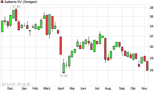 Mit dem Rücksetzer auf 26,12 EUR hat die Aalberts-Aktie (ISIN NL0000852564) am 06.11.2025 ein neues 6-Monats-Tief erreicht und damit den Kurs vom 05.11.2025 eingestellt.