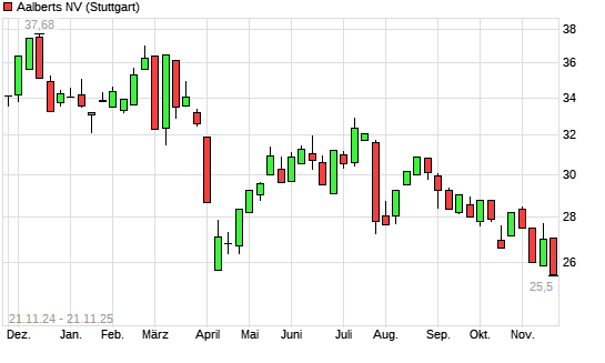 Mit dem Rücksetzer auf 25,82 EUR hat die Aalberts-Aktie (ISIN NL0000852564) am 20.11.2025 ein neues 6-Monats-Tief erreicht und damit den Kurs vom 06.11.2025 eingestellt.