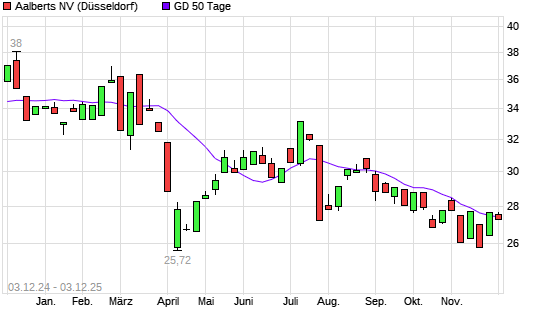 Mit dem Rücksetzer auf 27,32 EUR hat die Aalberts-Aktie am 02.12.2025 die 50-Tage-Linie nach unten gekreuzt.