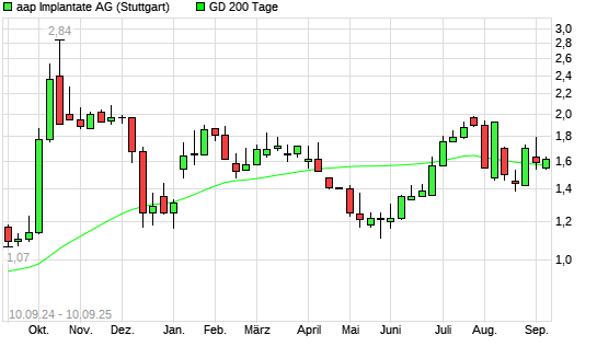 Mit dem Anstieg auf 1,55 EUR hat die Aap Implantate-Aktie am 09.09.2025 die 200-Tage-Linie nach oben gekreuzt.