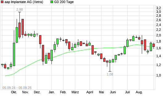Mit dem Rücksetzer auf 1,55 EUR hat die Aap Implantate-Aktie am 04.09.2025 die 200-Tage-Linie nach unten gekreuzt.