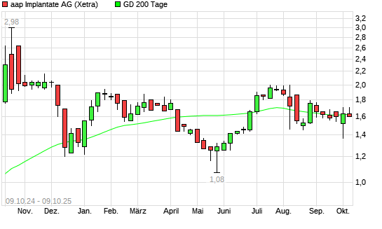 Mit dem Rücksetzer auf 1,51 EUR hat die Aap Implantate-Aktie am 08.10.2025 die 200-Tage-Linie nach unten gekreuzt.Die Aap Implantate-Aktie befand sich seit dem 06.10.2025 im langfristigen ...weiterlesen