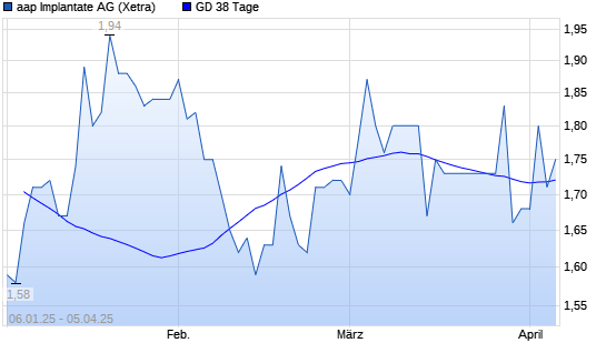 Mit dem Rücksetzer auf 1,62 EUR hat die Aap Implantate-Aktie am 04.04.2025 die 38-Tage-Linie nach unten gekreuzt.Die Aap Implantate-Aktie befindet sich seit dem 03.01.2025 im langfristigen ...weiterlesen