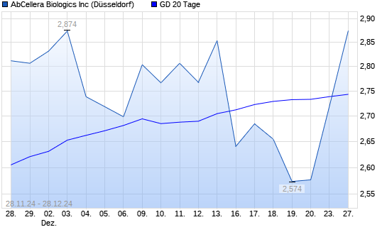 Mit dem Anstieg auf 2,88 EUR hat die AbCellera Biologics-Aktie am 27.12.2024 die 20-Tage-Linie nach oben gekreuzt.