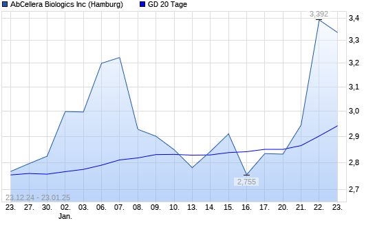 Mit dem Anstieg auf 2,90 EUR hat die AbCellera Biologics-Aktie am 22.01.2025 die 20-Tage-Linie nach oben gekreuzt.