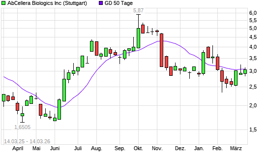 Mit dem Anstieg auf 3,13 EUR hat die AbCellera Biologics-Aktie am 13.03.2026 die 50-Tage-Linie nach oben gekreuzt.
