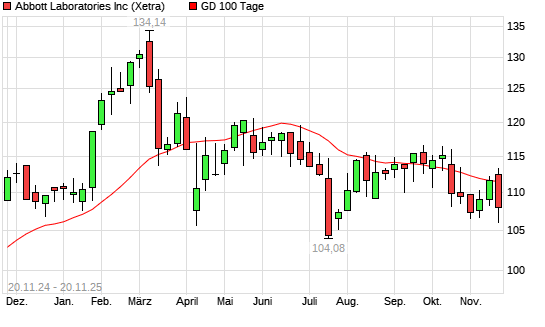 Mit dem Rücksetzer auf 110,20 EUR hat die Abbott Laboratories-Aktie am 19.11.2025 die 100-Tage-Linie nach unten gekreuzt.