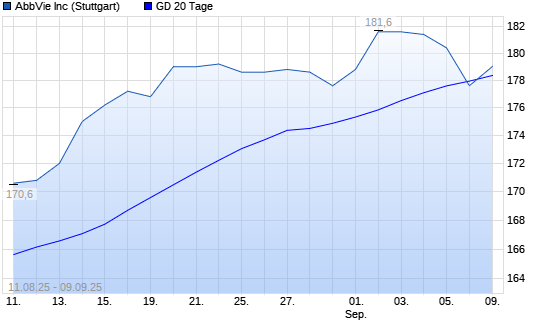 Mit dem Rücksetzer auf 177,40 EUR hat die Abbvie-Aktie am 08.09.2025 die 20-Tage-Linie nach unten gekreuzt.