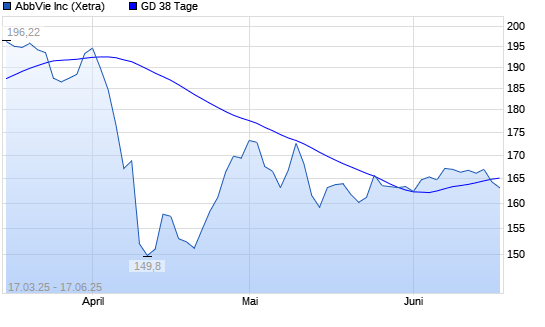 Mit dem Rücksetzer auf 163,80 EUR hat die Abbvie-Aktie am 16.06.2025 die 38-Tage-Linie nach unten gekreuzt.