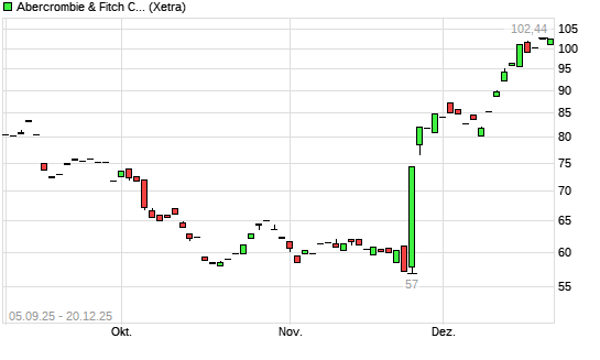 Mit dem Anstieg auf 101,74 EUR hat die Abercrombie & Fitch-Aktie (ISIN US0028962076) am 19.12.2025 ein neues 6-Monats-Hoch erreicht und damit den Kurs vom 16.12.2025 eingestellt.