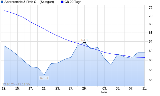 Mit dem Anstieg auf 62,30 EUR hat die Abercrombie & Fitch-Aktie am 10.11.2025 die 20-Tage-Linie nach oben gekreuzt.