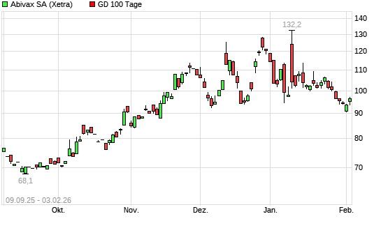 Mit dem Rücksetzer auf 90,80 EUR hat die Abivax-Aktie am 02.02.2026 die 100-Tage-Linie nach unten gekreuzt.