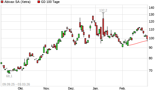 Mit dem Rücksetzer auf 96,00 EUR hat die Abivax-Aktie am 02.03.2026 die 100-Tage-Linie nach unten gekreuzt.