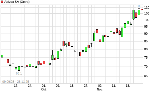 Mit dem Anstieg auf 110,40 EUR hat die Abivax-Aktie (ISIN FR0012333284) am 25.11.2025 ein neues All-Time-High erreicht und damit den Kurs vom 21.11.2025 eingestellt.Die Abivax-Aktie befindet ...weiterlesen