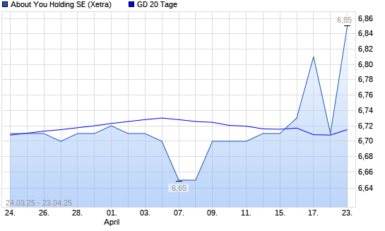 Mit dem Anstieg auf 6,76 EUR hat die About You-Aktie am 22.04.2025 die 20-Tage-Linie nach oben gekreuzt.